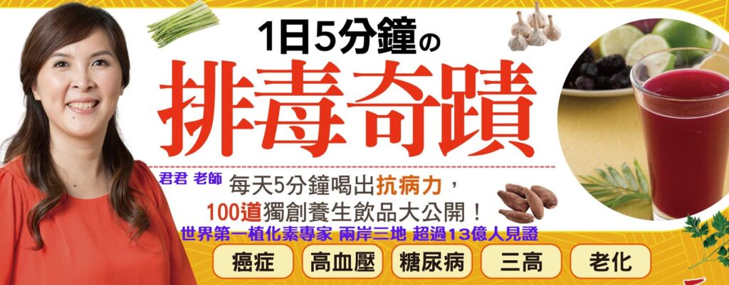 排毐奇蹟一日五分鐘的排毒奇蹟facebookyoutubeline 植化素專家 君君老師兩岸三地公認的養生權威,推廣自然健康飲食第一人...